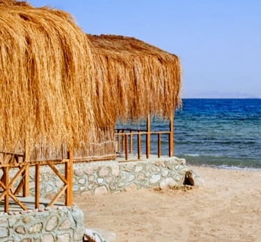 Situado nas margens de Ras Shitan, no sul do Sinai, no Egito, o nosso acampamento de praia oferece bungalows acolhedores junto ao Mar Vermelho, perfeitos para uma escapadinha tranquila.